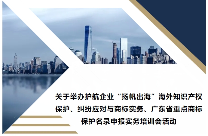 • 關于舉辦護航企業(yè)“揚帆出海”海外知識產權保護、糾紛應對與商標實務、廣東省重點商標保護名錄申報實務培訓會活動
